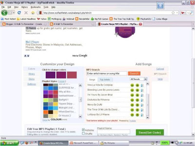 Korang leh pilih nak color ape..so pepandai ubah la yer ikut color kesukaan korang..Cam no nak pilih lagu..?..sonang bah tu..kat sebelah tempat korang pilih color tu kan ada list..corang pilih la lagu pe korang nak..n klik +..ada kan icon + kat tepi lagu pilihan korang tu..pastu nanti dia akan terus kuar kat player kat atas tu..maknanya korang leh dengar la kan..kalau korang pilih lagi lagu..dia akan add lagi kat player korang..so kalau nak ada banyak2 lagi sila la klik banyak2 lagu..